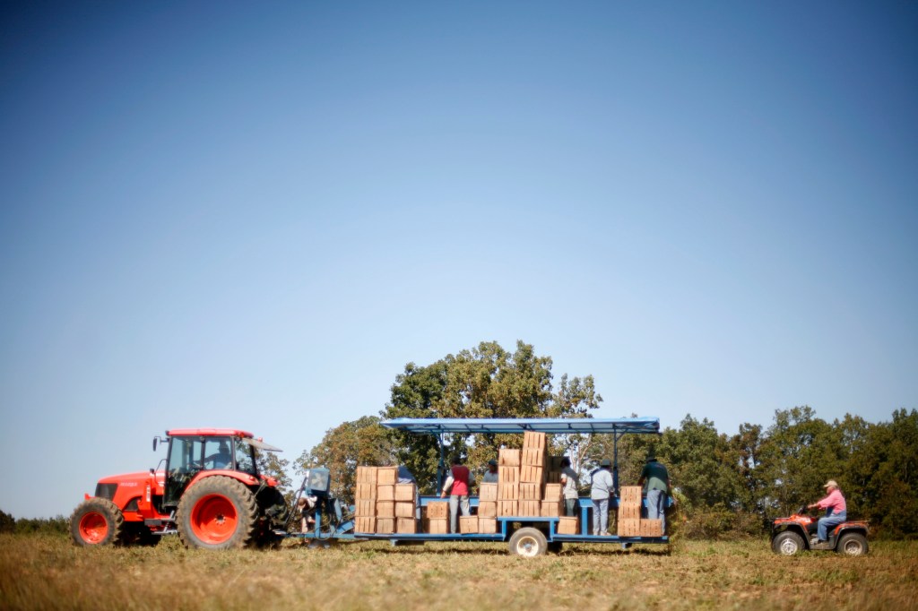 Neither Jerry nor his son Chad speak much Spanish, and few of the migrant workers speak much English, so most communication about farm tasks happens through a combination of few words and many gestures. “You show them one time and you can go off and leave them in the field,” Chad Barber said.