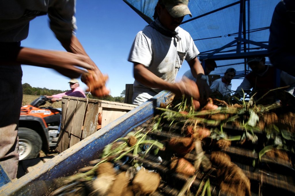 After working with migrant workers from Mexico for the last 11 years, Jerry Barber still communicates using hand signals. Jerry Barber has six new migrant workers that have never harvested sweet potatoes before, so he communicates to Saul Mortinez, a more experienced migrant worker, what must be done and Mortinez tries to translate. It will take four days of work to clear one field of sweet potatoes. “You show them one time and you can go off and leave them in the field.” said Jerry Barber.